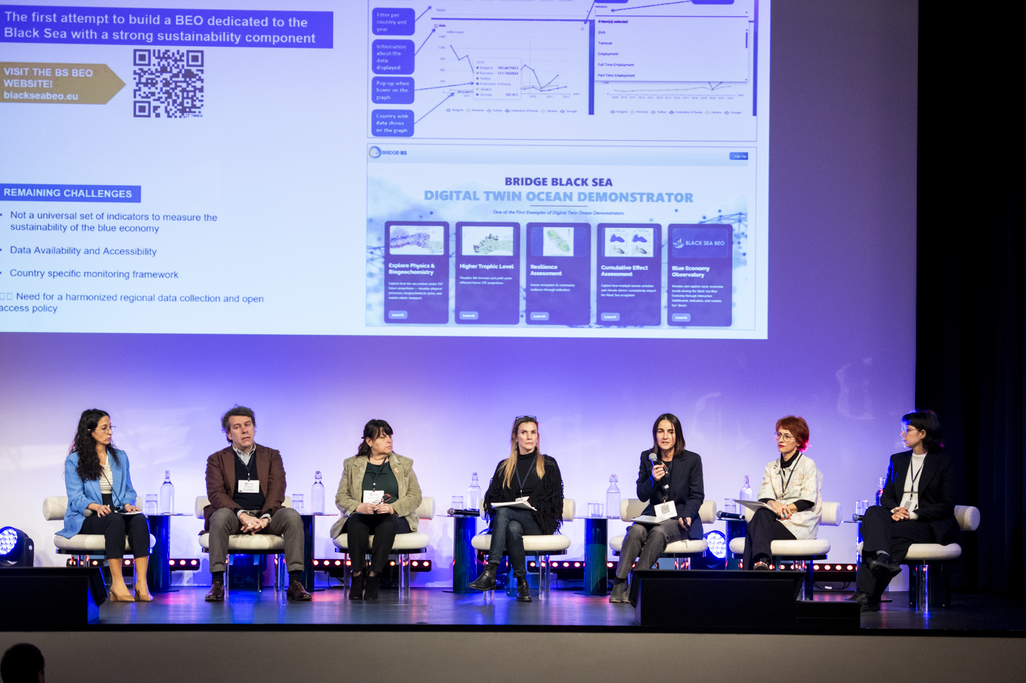 The main session presented BRIDGE-BS’s core results, structured around the project’s mission to define a safe operating space for the Black Sea. The session opened with the Black Sea DTO Demonstrator, the project’s flagship output. This innovative digital twin integrates data, modelling, and scenario analyses to support informed and adaptive decision-making, illustrating the potential of next-generation ocean intelligence in managing the Black Sea under environmental and socio-economic multi-stressors.